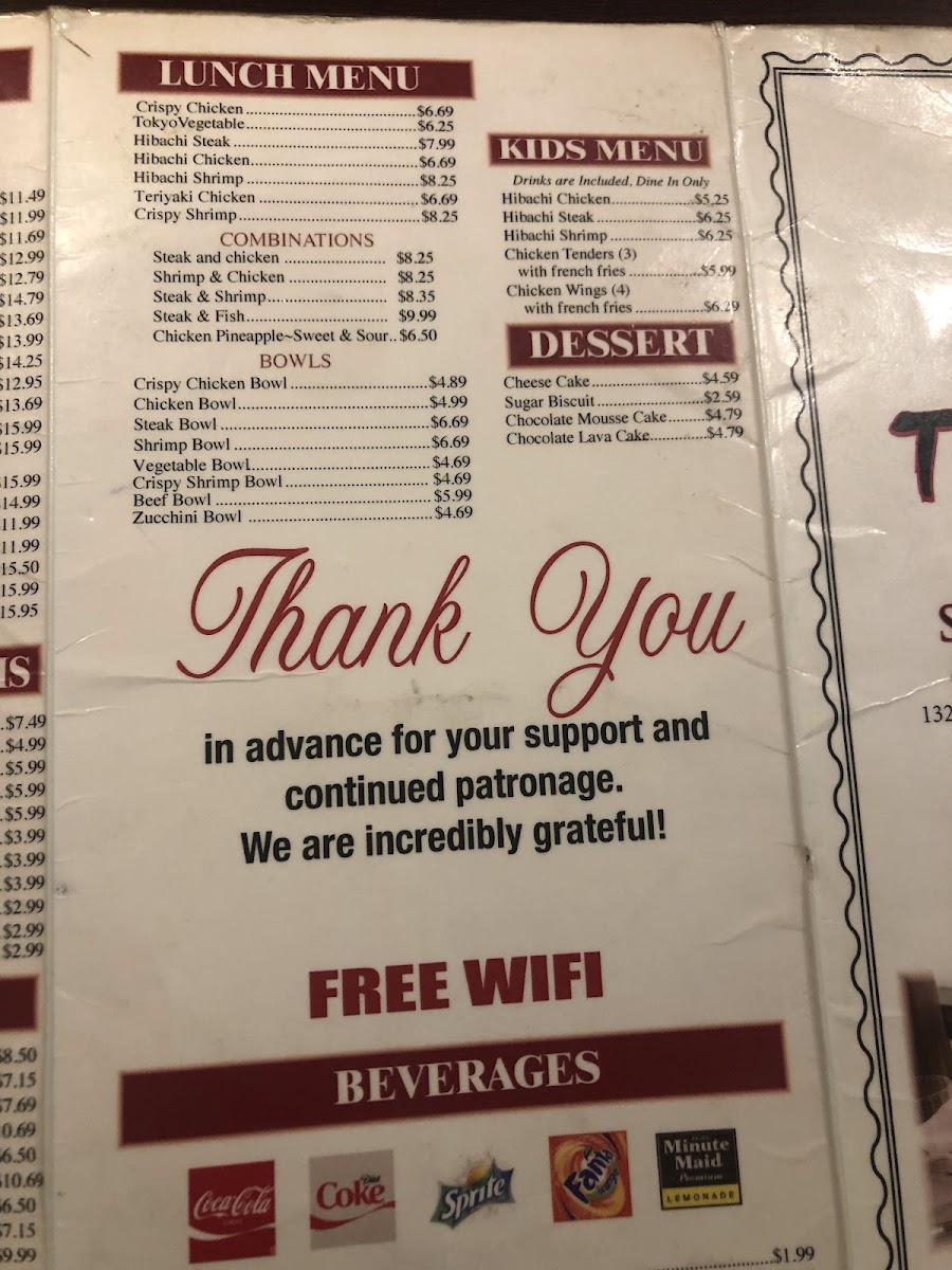 Tokyo bistro - Elizabethtown Menu