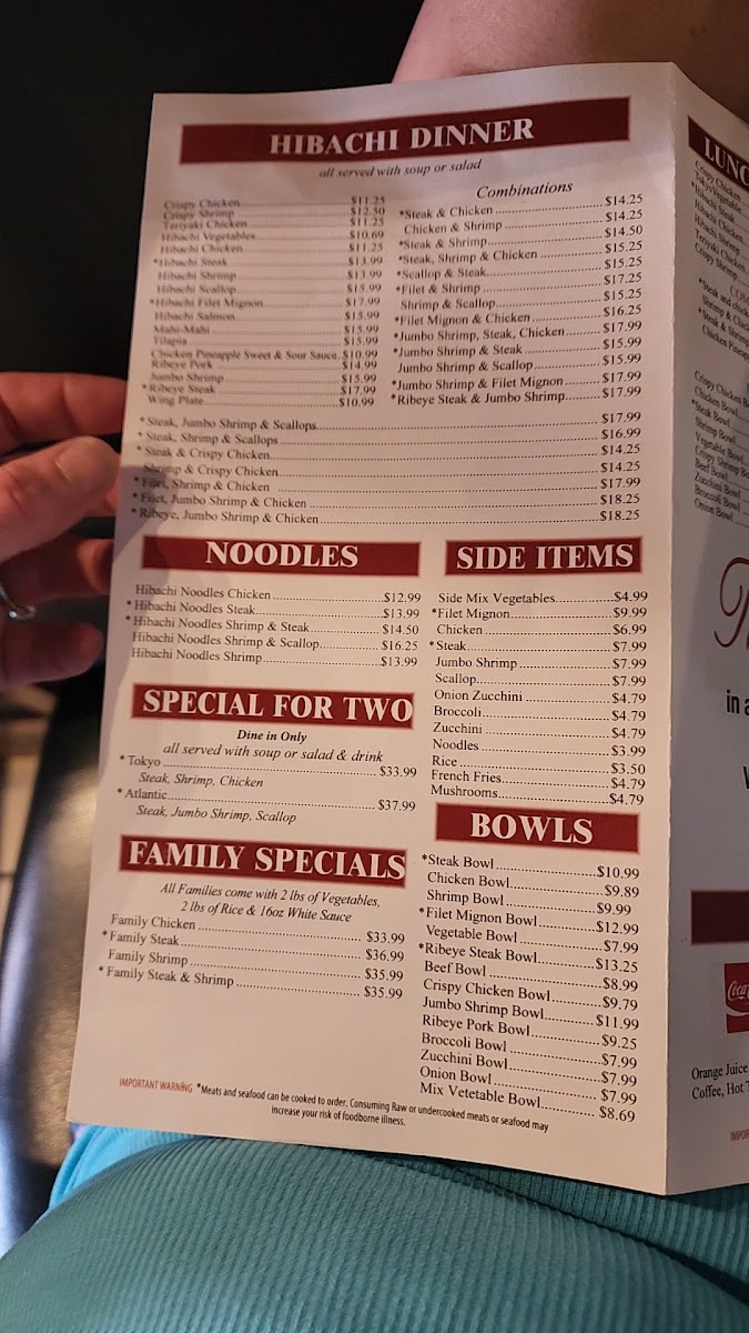On the menu, you’ll find dishes like crispy chicken and teriyaki chicken that are easy to enjoy any day of the week, alongside hibachi selections featuring shrimp, chicken, and steak. The noodles section offers hearty options perfect for those craving something warm and satisfying, while a variety of side items—from filet mignon to fresh vegetables—allow you to customize your meal to your taste.